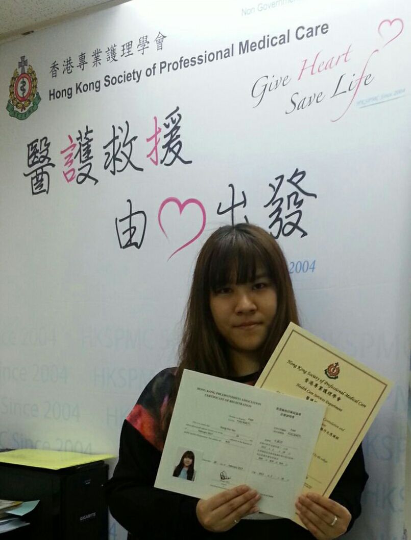 恭喜凱欣,你已經成為P369註冊抽血技術員。現職專科診所,你的專業令更多人受惠。